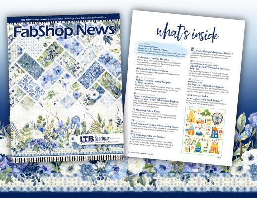 Check out the latest Issue of FabShop News trade magazine. These are a few articles from the most recent issue: Adding Garment Sewing Supplies to Your Inventory, Planning Your Shop’s Educational Program, Legal Issues to Consider When Hosting Events, Why Shipping Software Matters…A Lot More Than You Think, Do Loyalty Rewards Programs Deliver, Plus More!